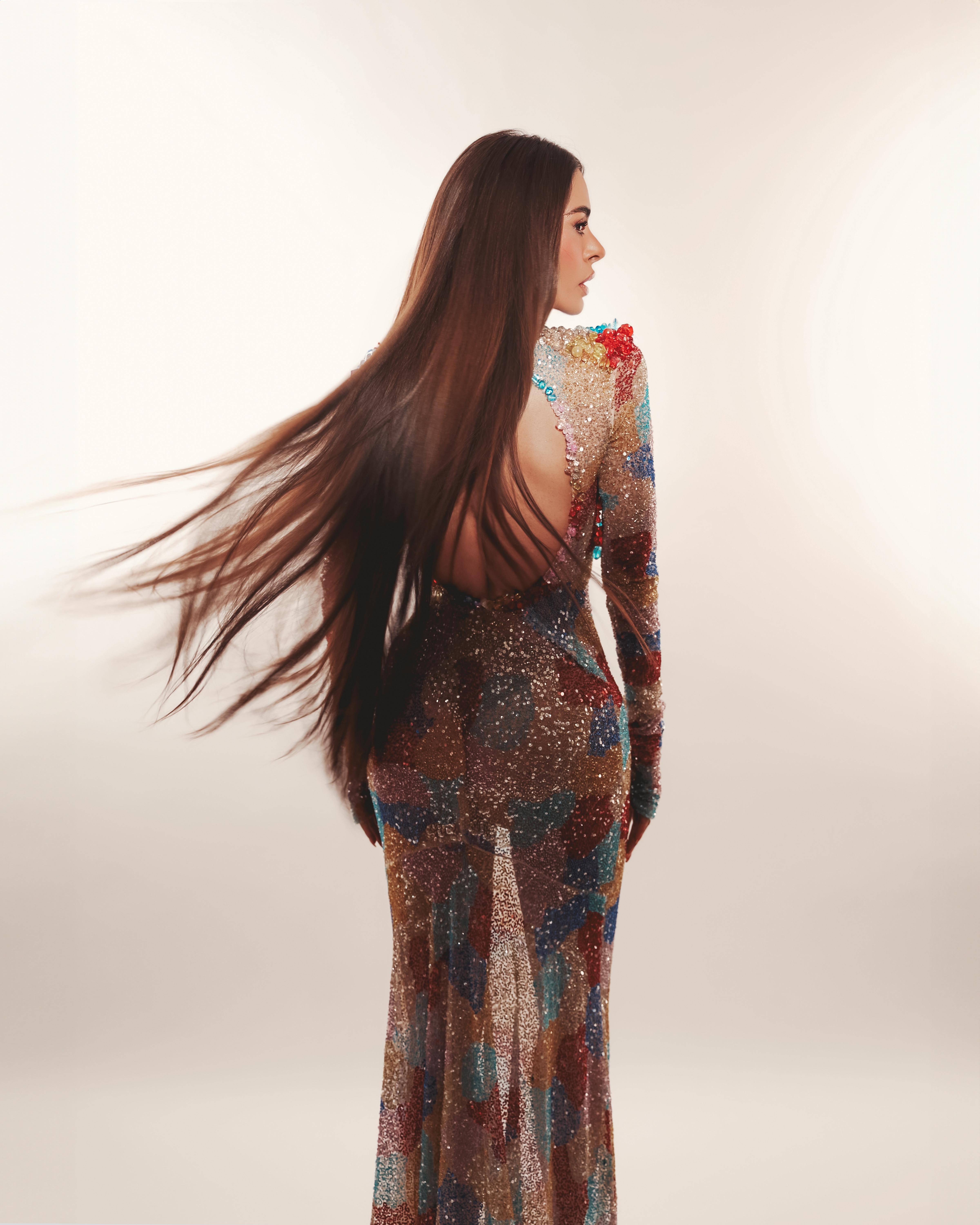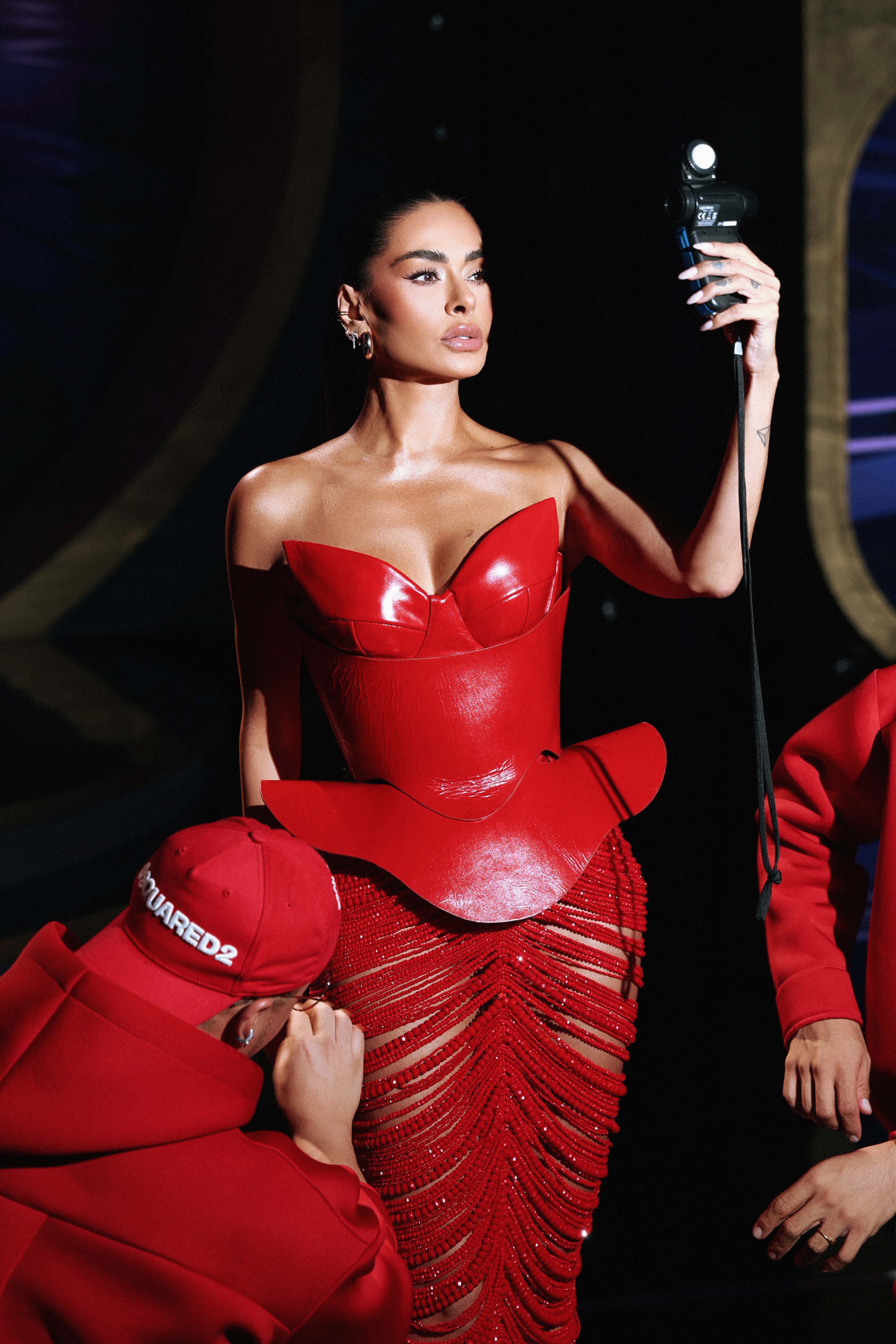 Durante esta colaboración creamos varios looks para Galilea; algunos fueron diseños hechos especialmente para ella desde cero, y otros surgieron a partir de piezas seleccionadas de su propio guardarropa, los cuales intervenimos y transformamos con nuestro sello característico.