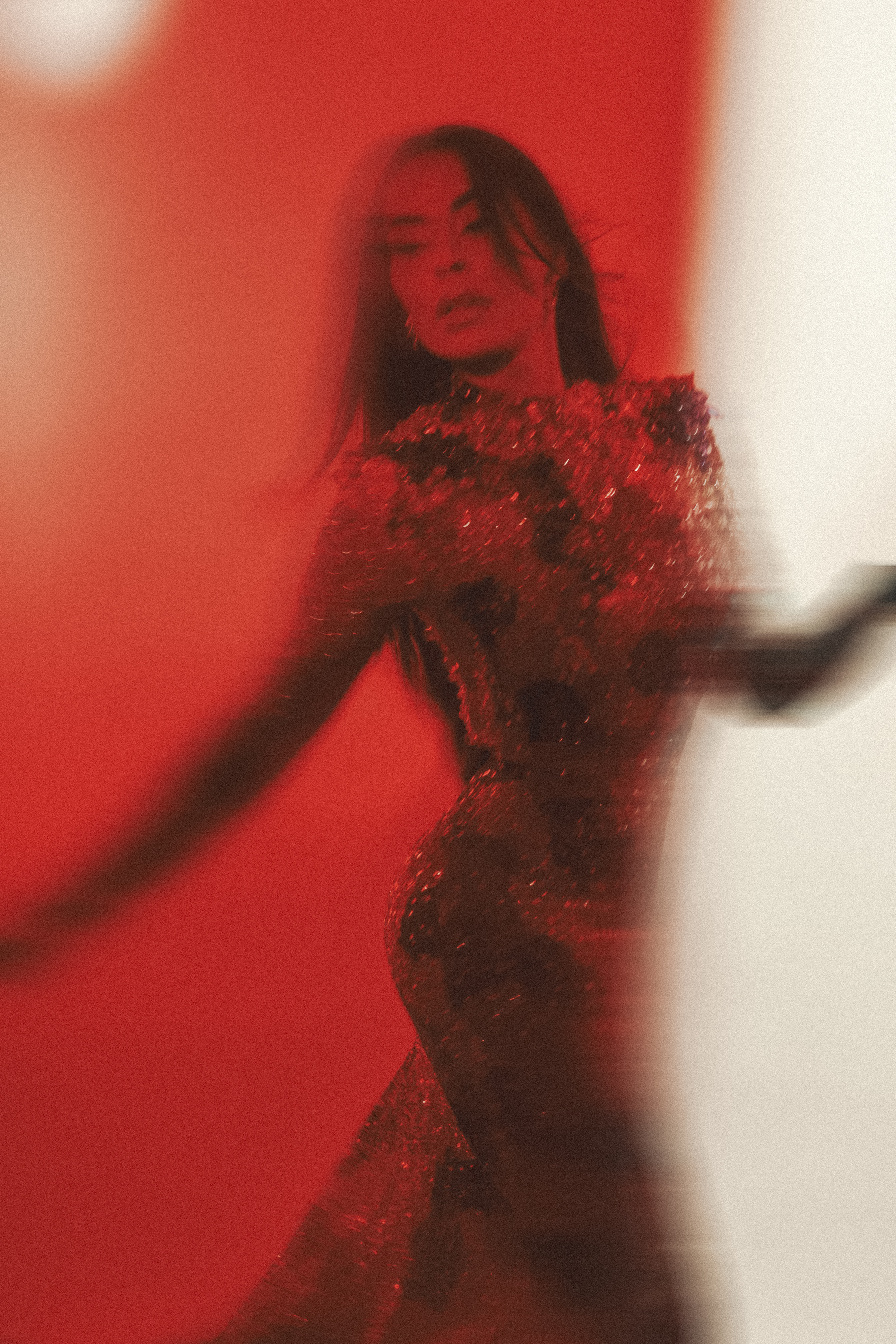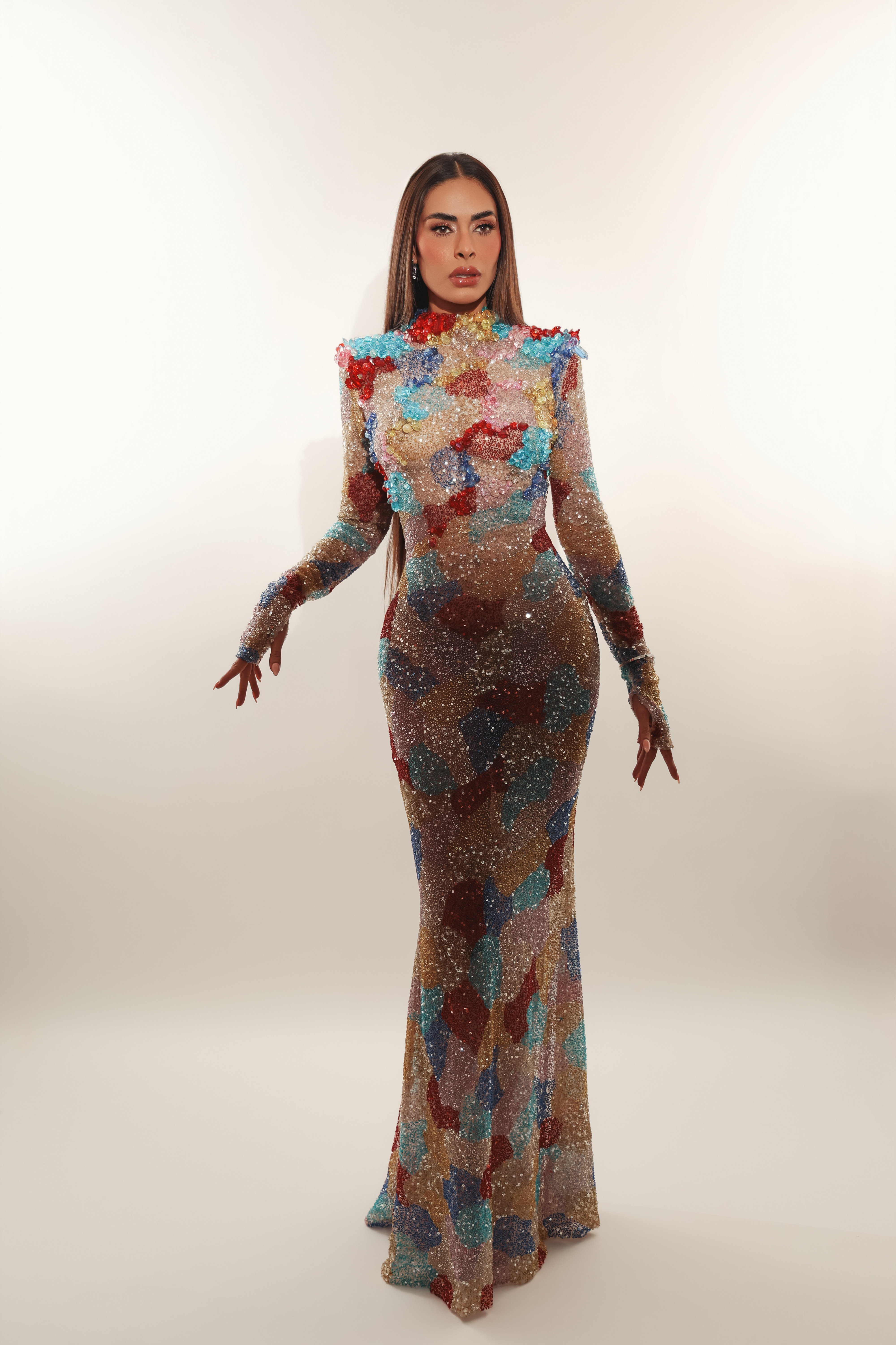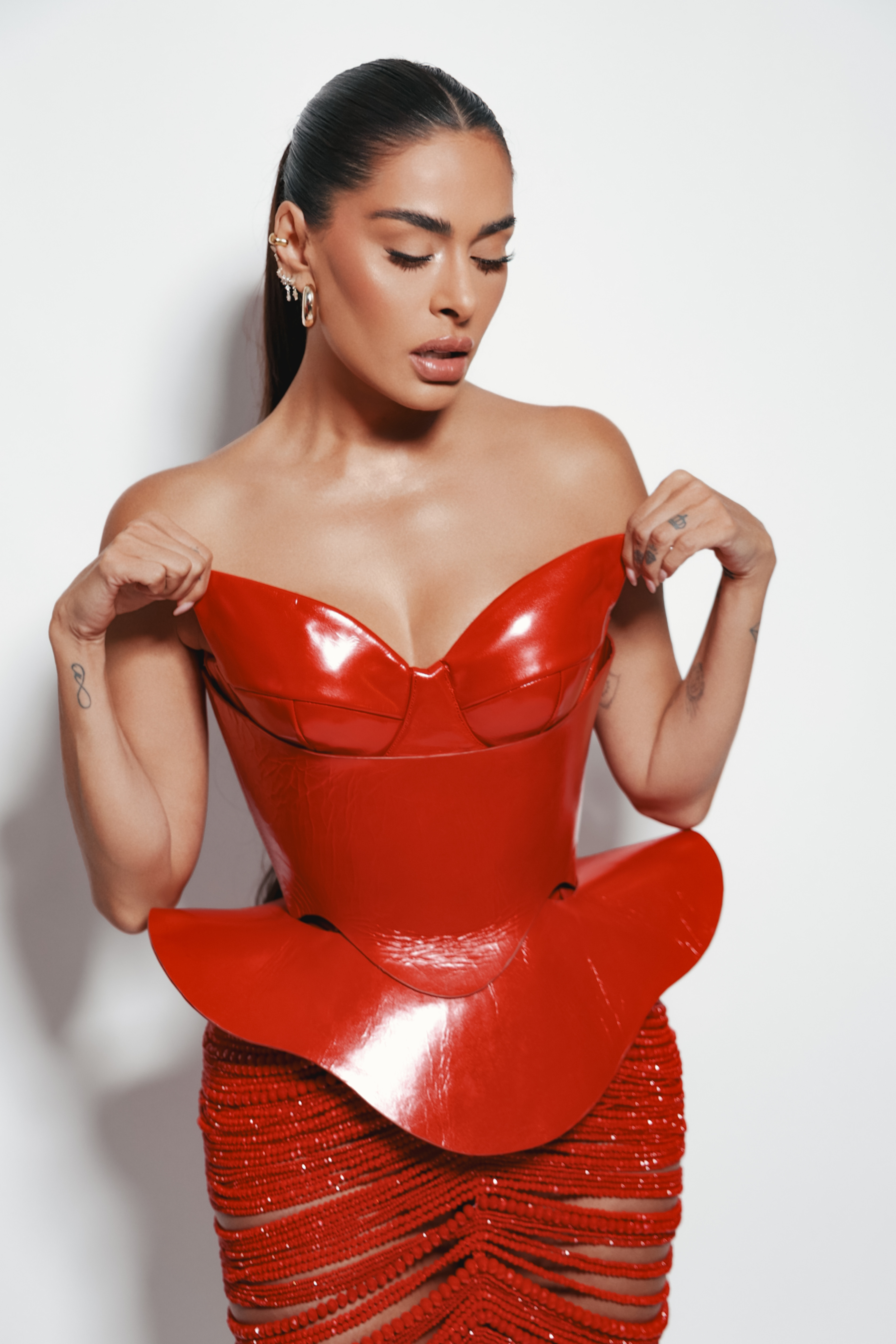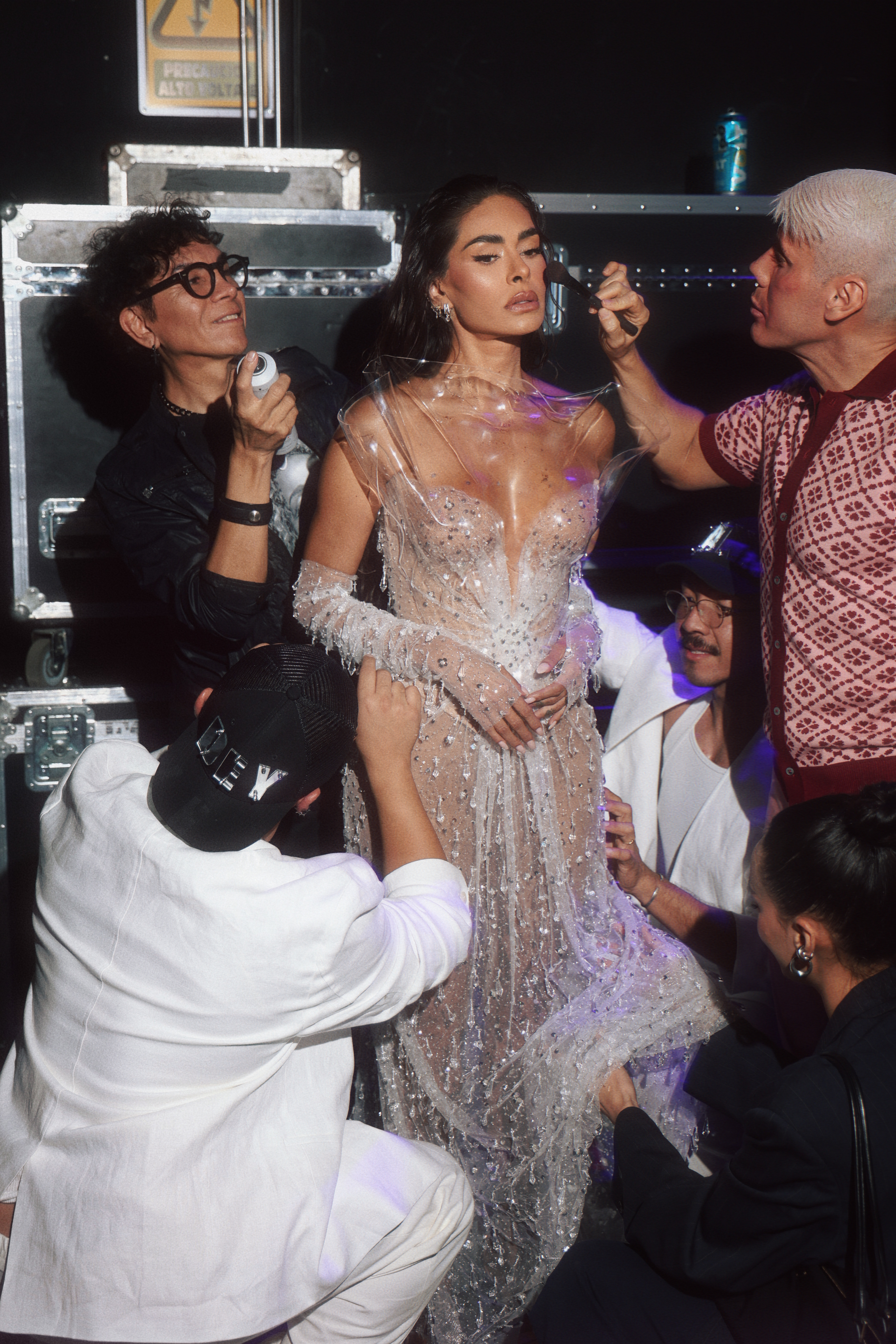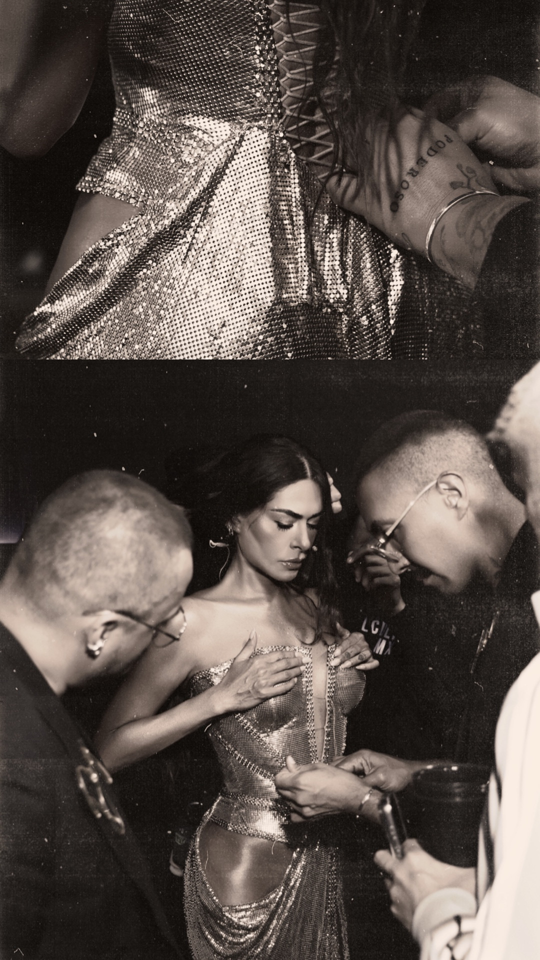 Durante esta colaboración creamos varios looks para Galilea; algunos fueron diseños hechos especialmente para ella desde cero, y otros surgieron a partir de piezas seleccionadas de su propio guardarropa, los cuales intervenimos y transformamos con nuestro sello característico.